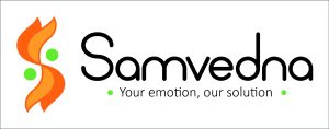 The logo for Samvedna reflects compassion, growth, and harmony—perfectly aligning with the brand’s mission of offering emotional and practical solutions. The flowing S-shaped form represents empathy and support, while the green dots symbolize people or lives being uplifted. The warm orange hues convey energy, positivity, and hope.